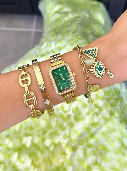L’acier inoxydable 316L — utilisé en horlogerie fine — compose l’ossature de nos bijoux. Il résiste à l’eau, aux rayures, à l’usure. Il ne plie pas, ne ternit pas, ne cède pas.