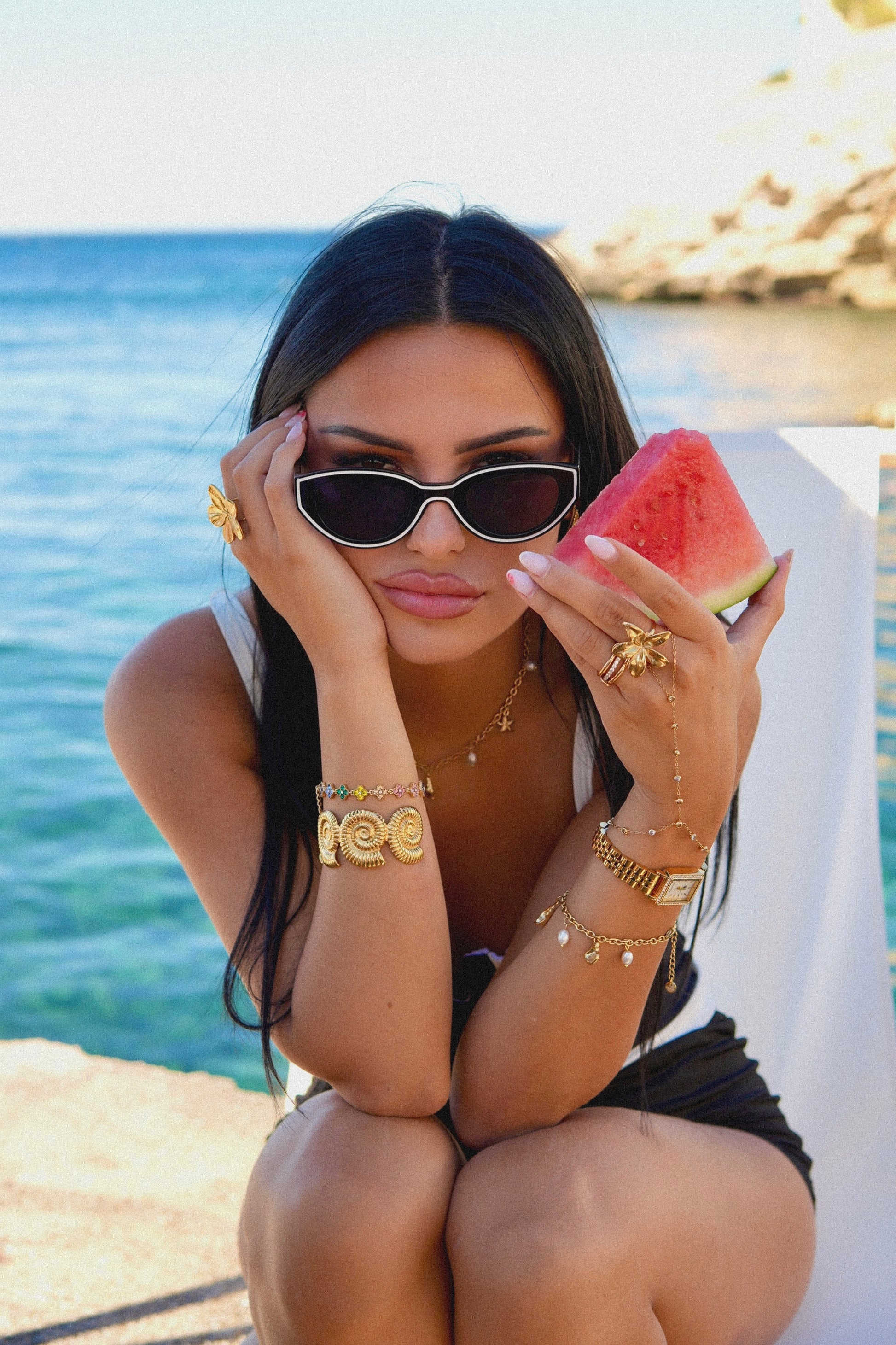 L’acier inoxydable 316L — utilisé en horlogerie fine — compose l’ossature de nos bijoux. Il résiste à l’eau, aux rayures, à l’usure. Il ne plie pas, ne ternit pas, ne cède pas.