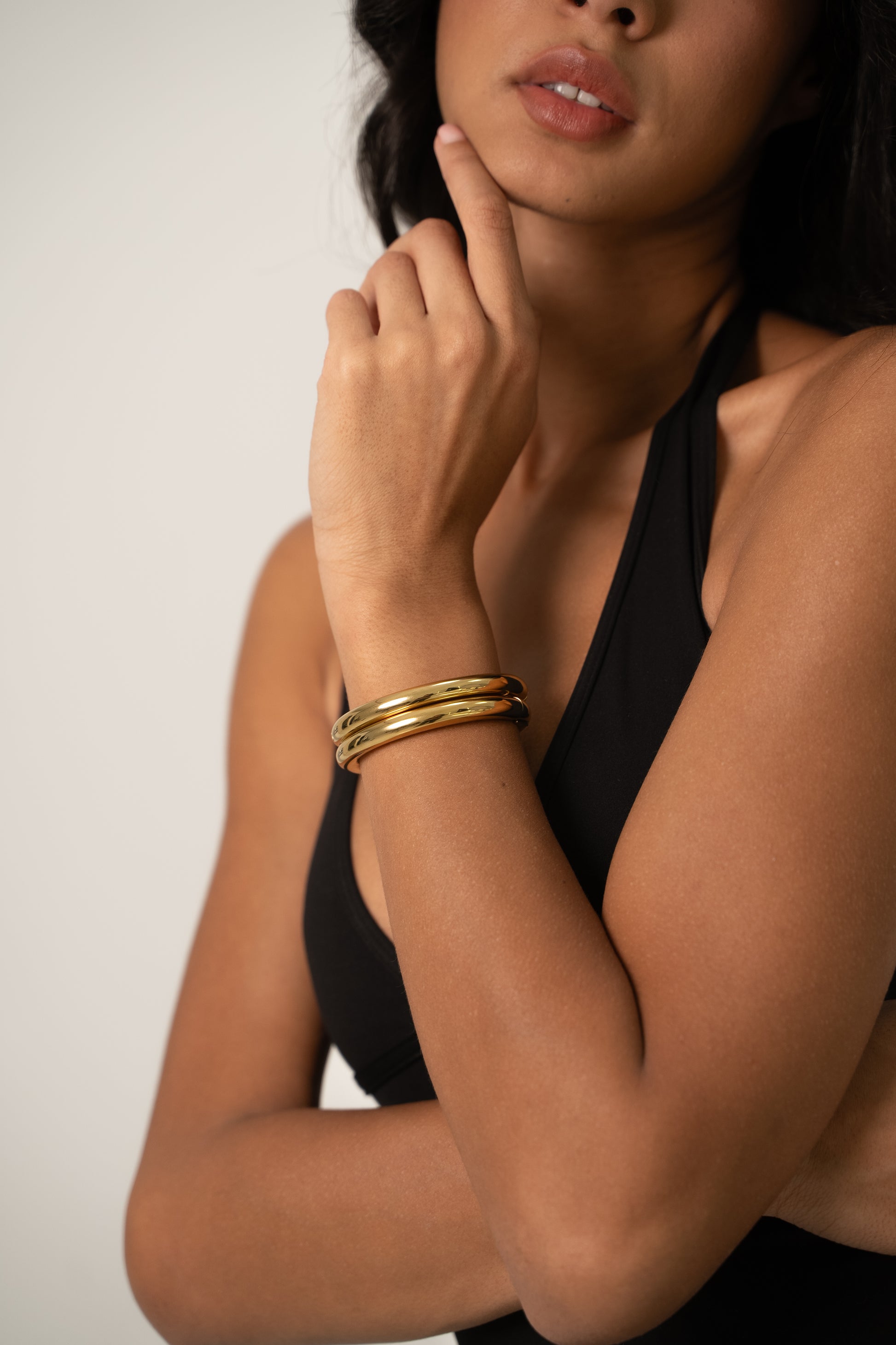 A bangle with a strong presence, a bold look, and solid, rounded lines. A simple and timeless piece, designed to last.