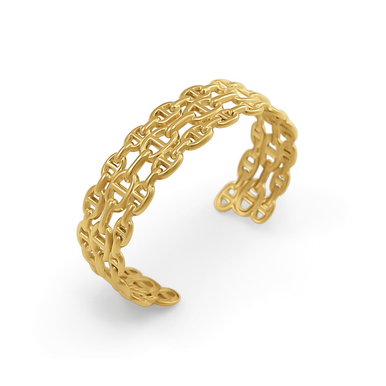 L’acier inoxydable 316L — utilisé en horlogerie fine — compose l’ossature de nos bijoux. Il résiste à l’eau, aux rayures, à l’usure. Il ne plie pas, ne ternit pas, ne cède pas.